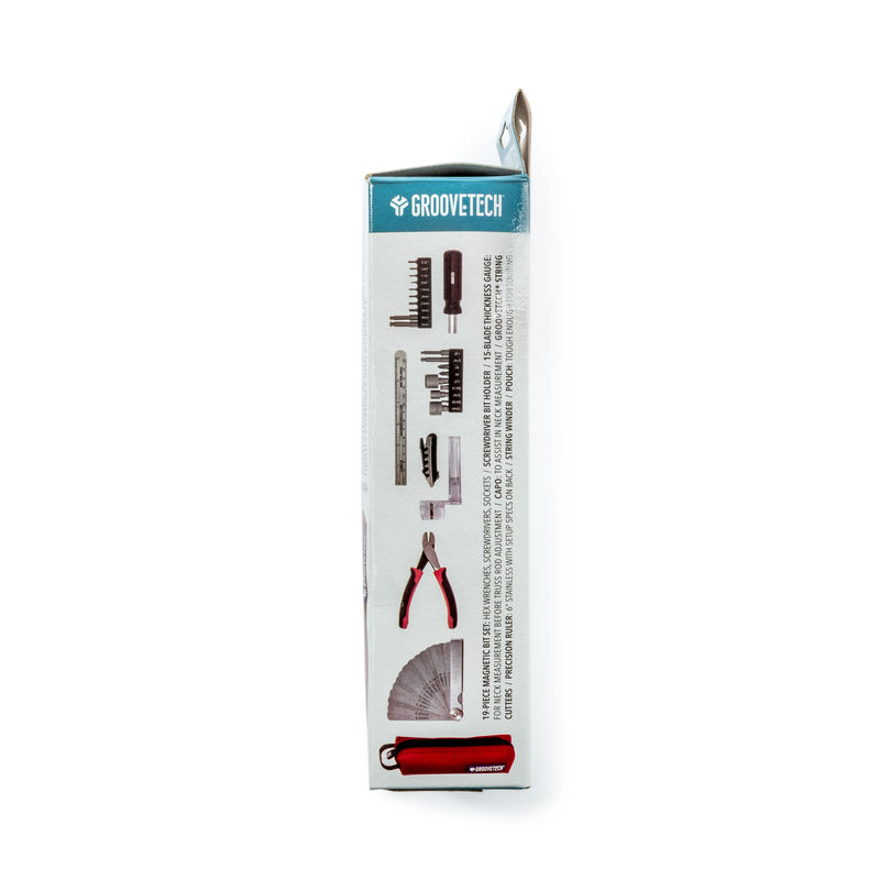 Ten zestaw zbiera wszystko, czego potrzebujesz do dokładnego ustawienia gitary, w superkompaktowej torbie, którą można łatwo schować do futerału lub pokrowca twojego instrumentu.